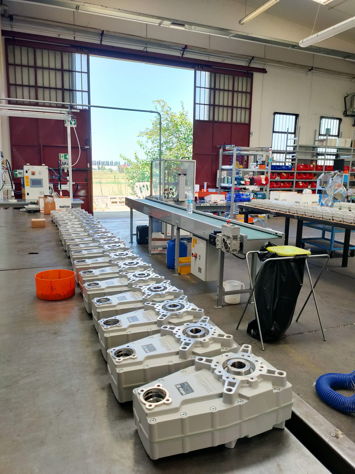 Assemblaggi di tutti i tipi e grandezze di riduttori a ingranaggi, a vite senza fine e di motori elettrici. Controlli visivi sui particolari da assemblare, controlli dimensionali, controlli di tenuta con strumenti appositi, di rumorosità e sulla funzionalità e assorbimento.
